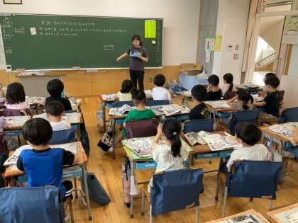 図工の時間です。「ひかりのくにの なかまたち」セロテープを上手に使えるようになりましょう。