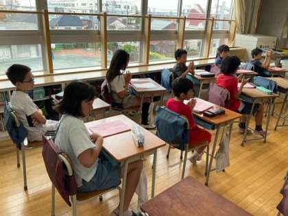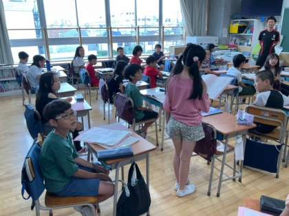 国語の時間です。「一つの花」に込められた作者の思いについて発表しています。