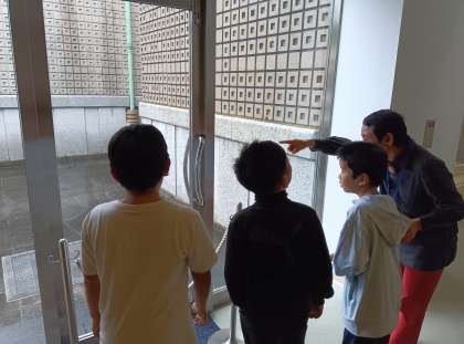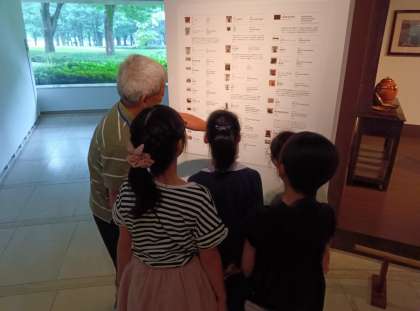 世田谷美術館に展示されている作品を鑑賞しています。ボランティアの方々が一つ一つ丁寧に説明してくれています。