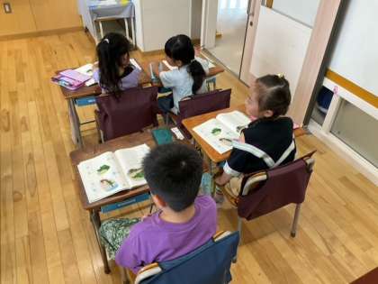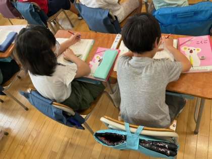国語の時間です。「はをへを つかおう」難しいけれど、慣れていきましょう。