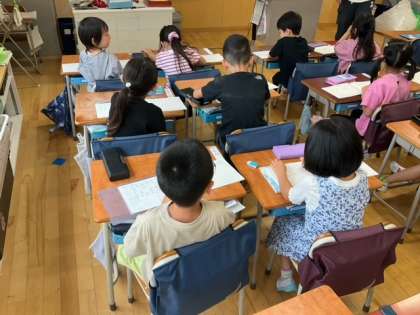 算数の時間です。「ひきざんのことば」を学習しています。のこりはいくつ。いくつおおい。