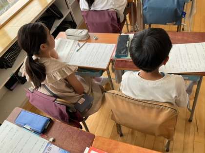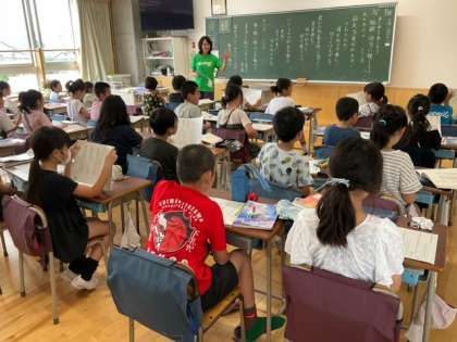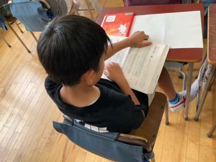 日本語の時間です。声に出して、リズムを味わいながら短歌や俳句を読んでいます。