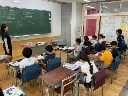 算数の時間です。「考える力をのばそう」今までに学習したことを使って、よりよい解き方を考えましょう。
