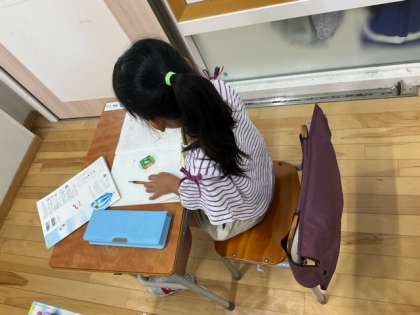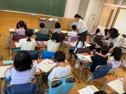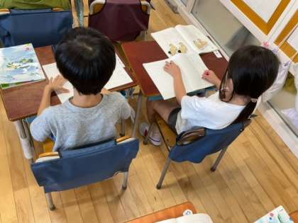 国語の時間です。「すきなこと、なあに」自分が好きなことを相手に伝えるためには、どんなことが必要かを学習します。