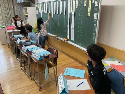 学級会の時間です。転校する友達のお別れ会について話し合っています。進行が上手になりました。