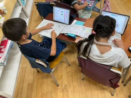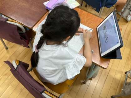 日本語の時間です。「かん字って おもしろい」漢字がどのようにしてできたのかを調べています。