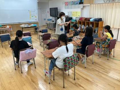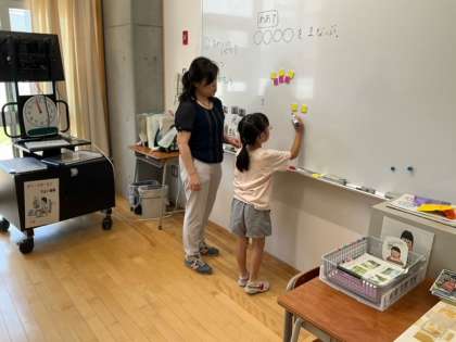 グループ学習の時間です。3年生は、「やさい」を読んでいます。