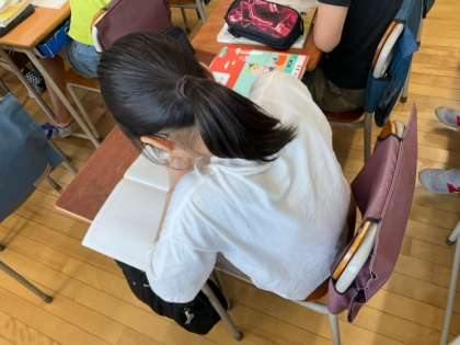 国語の時間です。「デジタル機器と私たち」デジタル機器との付き合い方について考え、提案する文を書いていきます。