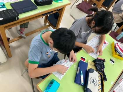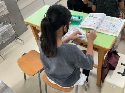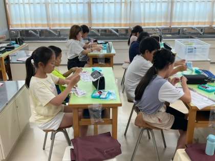 家庭科の時間です。なみぬいから一歩進んで、本返しぬい、半返しぬいに挑戦しています。