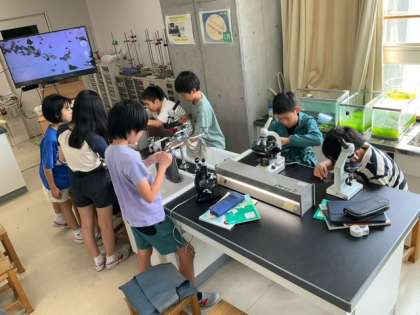 理科の時間です。今日の授業では、水性生物を観察しています。何が動いているのでしょうか?