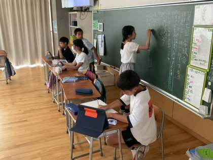 学級会の時間です。学級会では、課題発見や解決、実践に向けた合意形成など、社会で活用できる力を育てていきます。