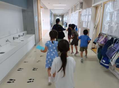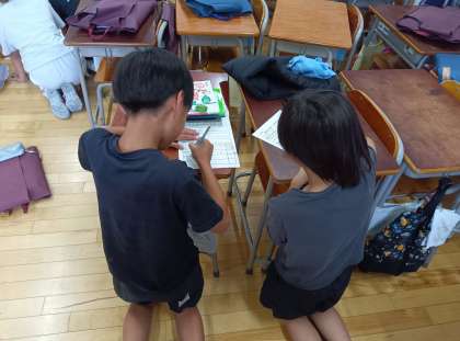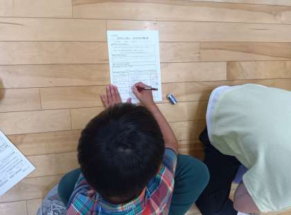 振り返りの時間です。新しく名前を覚えた友達もたくさんいるようです。楽しかったことが振り返りからよく分かりました。
