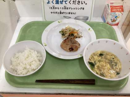 ごはん 鶏肉の味噌麹焼き 湯葉入りお浸し かんぴょうの卵とじ汁 牛乳