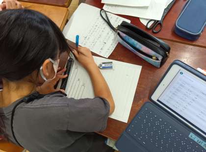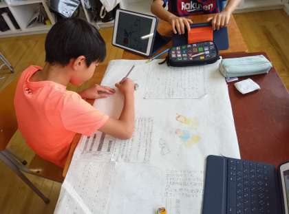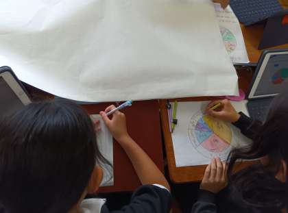 国語の時間です。クラスの好きなことを新聞にしています。グラフを使うことで、説得力のある新聞になりました。