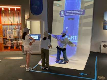 プラネタリウムを堪能し、もう一度、体験コーナーで楽しんでいます。
