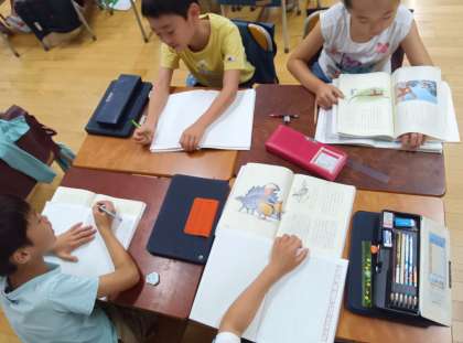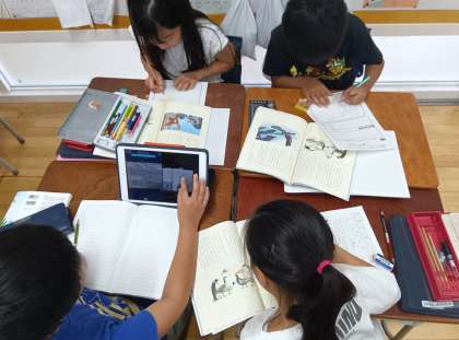 国語の時間です。本を読んで、分かったことからクイズを作りました。どんなクイズがいいかなぁとすごく悩んでいました。