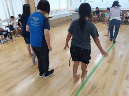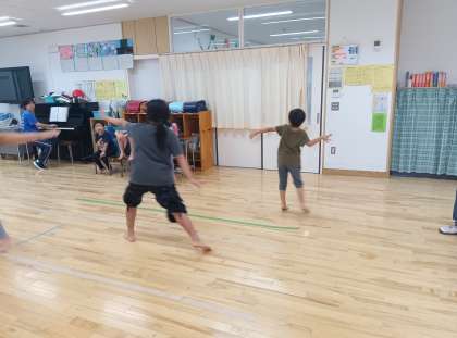 リトミックの時間です。リズムに合わせて、体を動かしました。