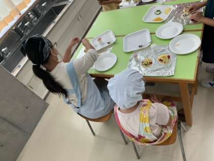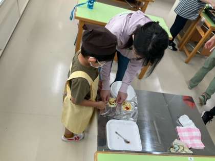 生活単元の時間です。楽しみにしていた「ピザづくり」。焼き上がりはどうかな?