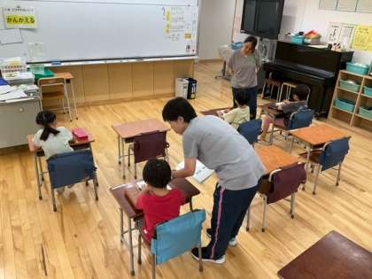 グループ学習の時間です。動物をテーマに、気持ちを通い合わせるゲームをしています。友達の考えていることを想像してみよう。