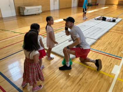 「ポールコーチと英語で楽しく運動」コーチと英語で会話しながら、楽しく運動しています。