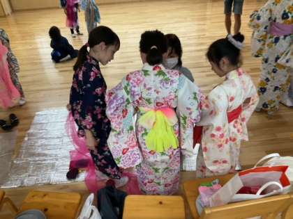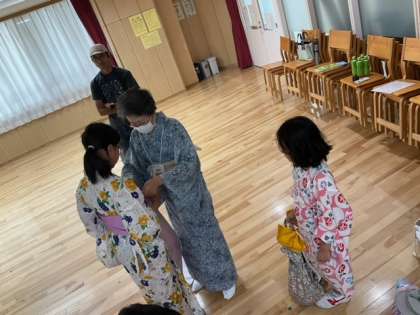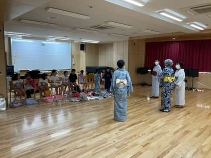 「レッツ YUKATA. ゆかた」浴衣の着方、帯の結び方を教わっています。シモキタ音頭を踊ってみましょう。