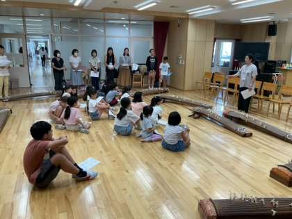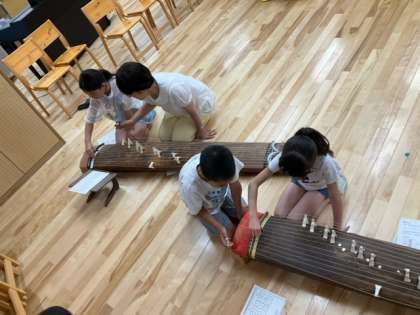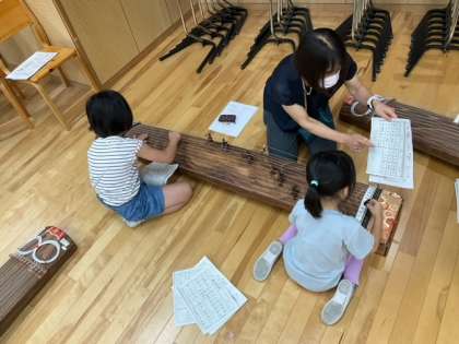 「お琴体験」地域の方々が講師となって、とてもていねいに教えてくださっています。