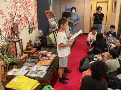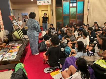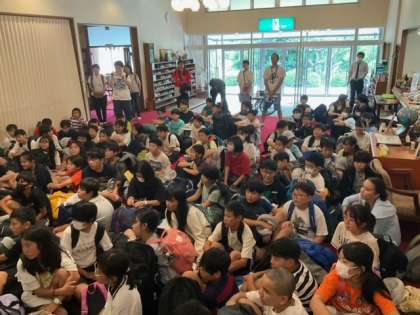 梅屋敷旅館に到着し、開園式を行っています。健康と安全に十分気をつけて、最高の日光林間学園にしましょう。