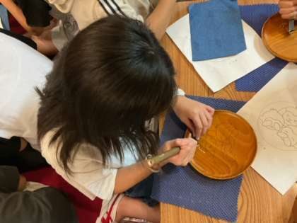 「日光彫りに挑戦」完成した作品は、土曜日のお楽しみですね。