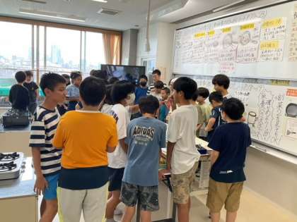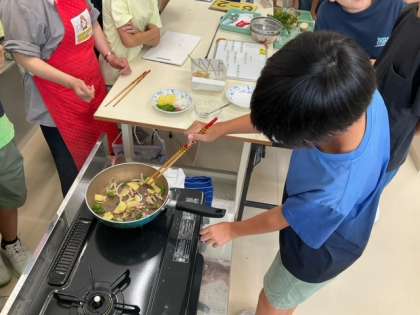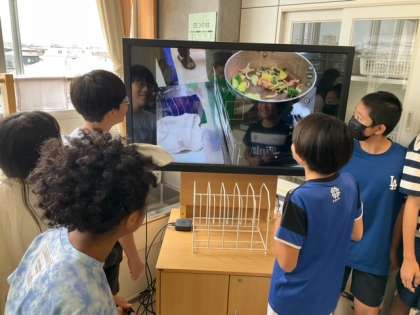 家庭科の時間です。ベーコンポテトの作り方を学習しています。次回は、実際に自分たちで作ってみます。
