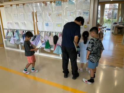 国語の時間です。「みんなに しらせよう」夏休みにしたことを、キーワードを決めて伝えていきます。