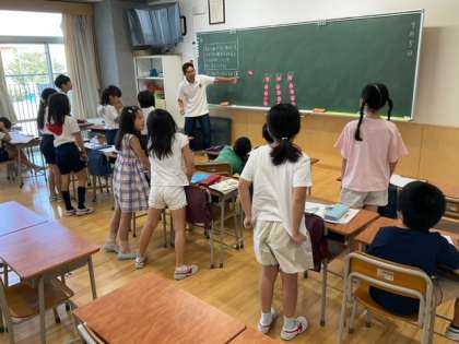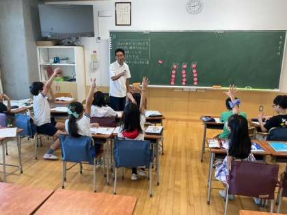 算数の時間です。あまりのあるわり算の学習をしています。具体物を使って考えています。