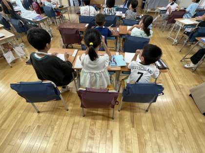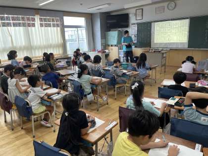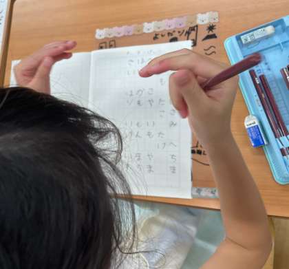 国語の時間です。文字の表からいろいろな言葉を見付けました。自分が予想していない答えもたくさんあり、驚いていました。