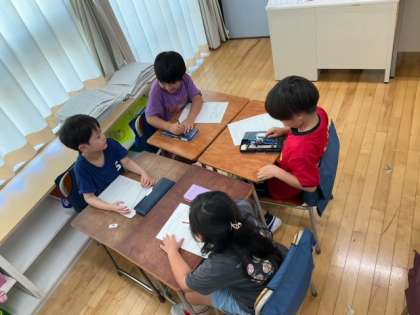 生活科の時間です。「もっともっと まちたんけん」木曜日に代田図書館に行きます。知りたいことや聞きたいことを話し合っています。
