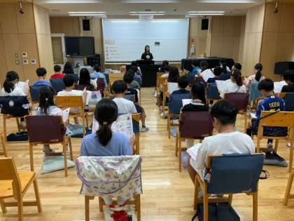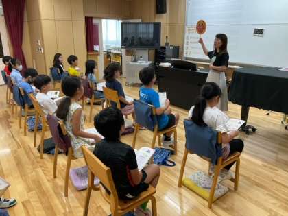 音楽の時間です。お腹からしっかり声を出して、よく響く声で歌っています。