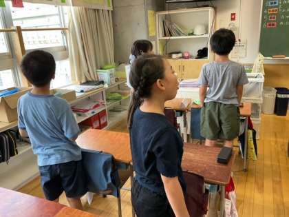 音楽の時間です。3年生の教室から、とてもすてきな校歌が聞こえてきました。