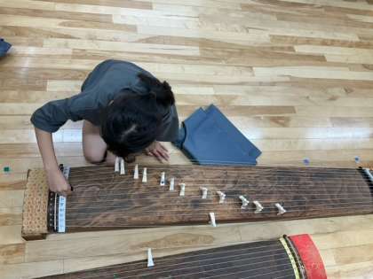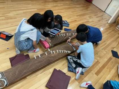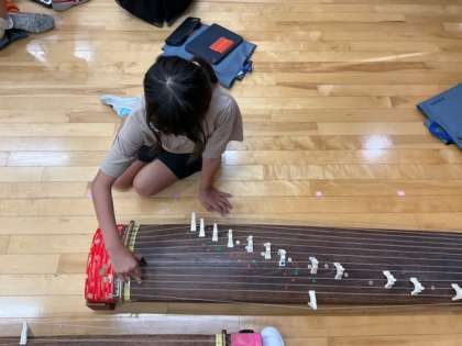 音楽の時間です。琴に挑戦しています。発表会に向けて、練習に熱が入ります。