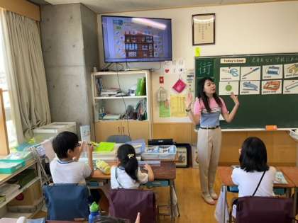 外国語活動の時間です。文房具など、学校にあるものを英語で言ってみましょう。