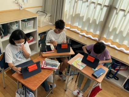 国語の時間です。「生きていく上で大切なものは何?」友達と意見を交流してみよう。