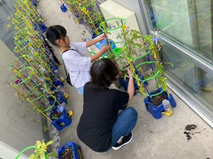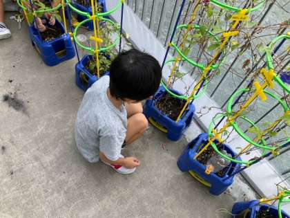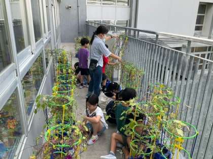 生活科の時間です。大切に育ててきた朝顔のつるを使って、リースを作ります。