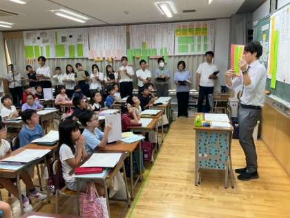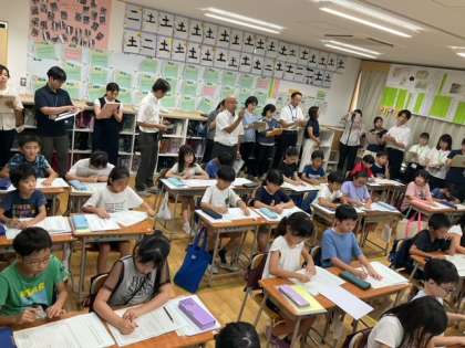 国語の時間です。3年1組で研究授業を行っています。子どもたちの成長が伝わってきます。