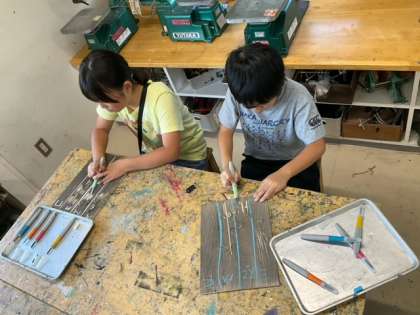 図工の時間です。「初めての彫刻刀」4年生にとって、彫刻刀は初めての経験になります。緊張しながらも、楽しそうです。