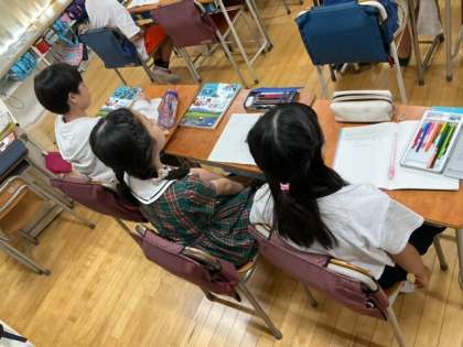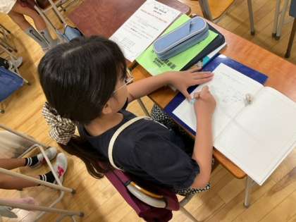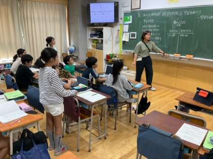 社会科の時間です。日本の食糧生産について学習を進めていきます。まずは、日本の食糧生産の長所と短所について考えています。