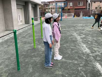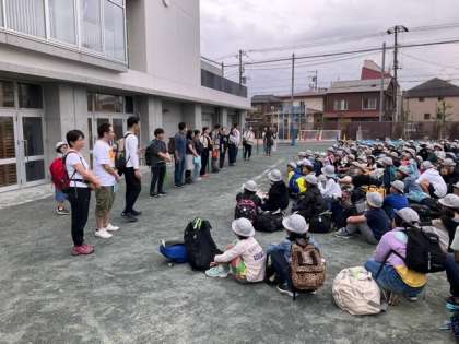 出発式が進めています。担当の児童が、一生懸命に進行しています。