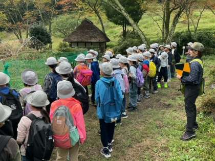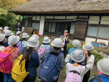 茅葺き屋根の古民家に、少しびっくり。葉も少しずつ色づいてきています。