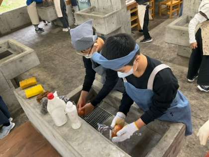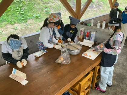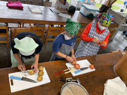 カレーづくりがスタートしました。調理実習で鍛えられている成果ですね。手際がいいです。