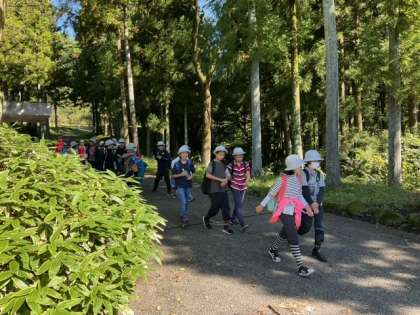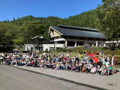 学年全員で記念の写真を撮って、ハイキングに出発します。