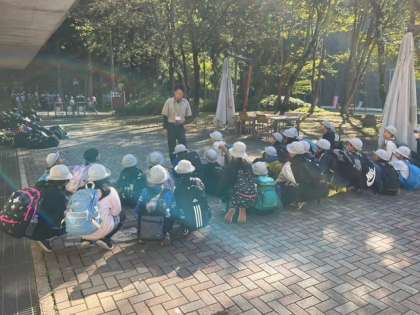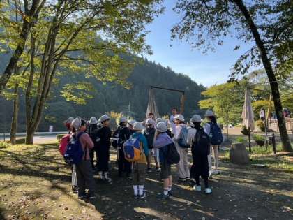 これから川場村めぐりに出発します。クラスごとに、ガイドの方が案内をしてくれます。