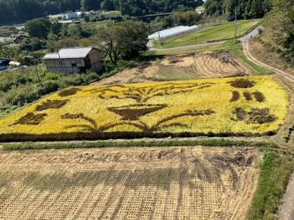 吊り橋の上からは、田んぼアートがくっきり見えました。