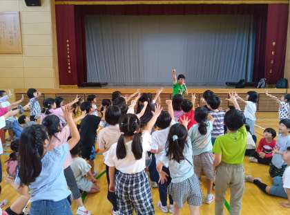 学年レクリエーションの時間です。4時間目まで頑張った子どもたちにお楽しみの時間です。笑顔いっぱいです。