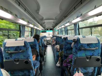 今日一日、バスでの移動です。子どもたちは、うれしそうです。